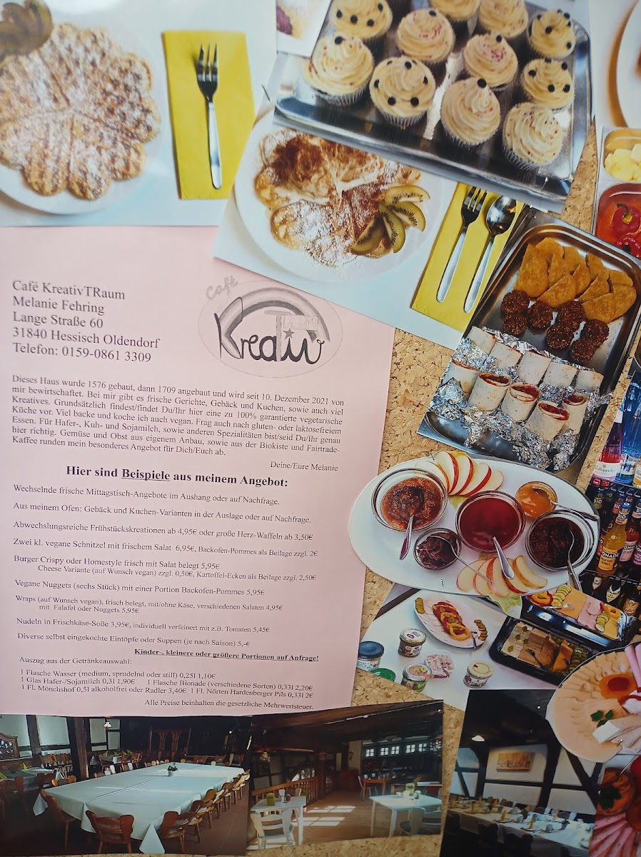 Welcome to Café kreativTRaum, a delightful gem nestled in Hessisch Oldendorf. Here, the menu is a celebration of wholesome, vegetarian, and vegan offerings that promise to satisfy all palates. Family-friendly, the café boasts an inviting atmosphere, where guests can enjoy an array of delicious dishes.